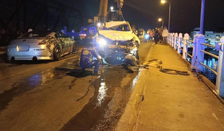 Tayland’da bir köprüde yol verme tartışması sonucu çıkan kavgada sürücülerden biri aracıyla diğer otomobile vurup nehre uçtu. Nehre düşen araçtaki 2 kişi hayatını kaybetti.