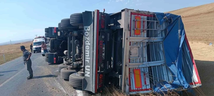 Çorum’un Alaca ilçesinde kontrolden çıkan buğday yüklü tır devrildi. Kazada 2’si çocuk 3 kişi yaralandı.