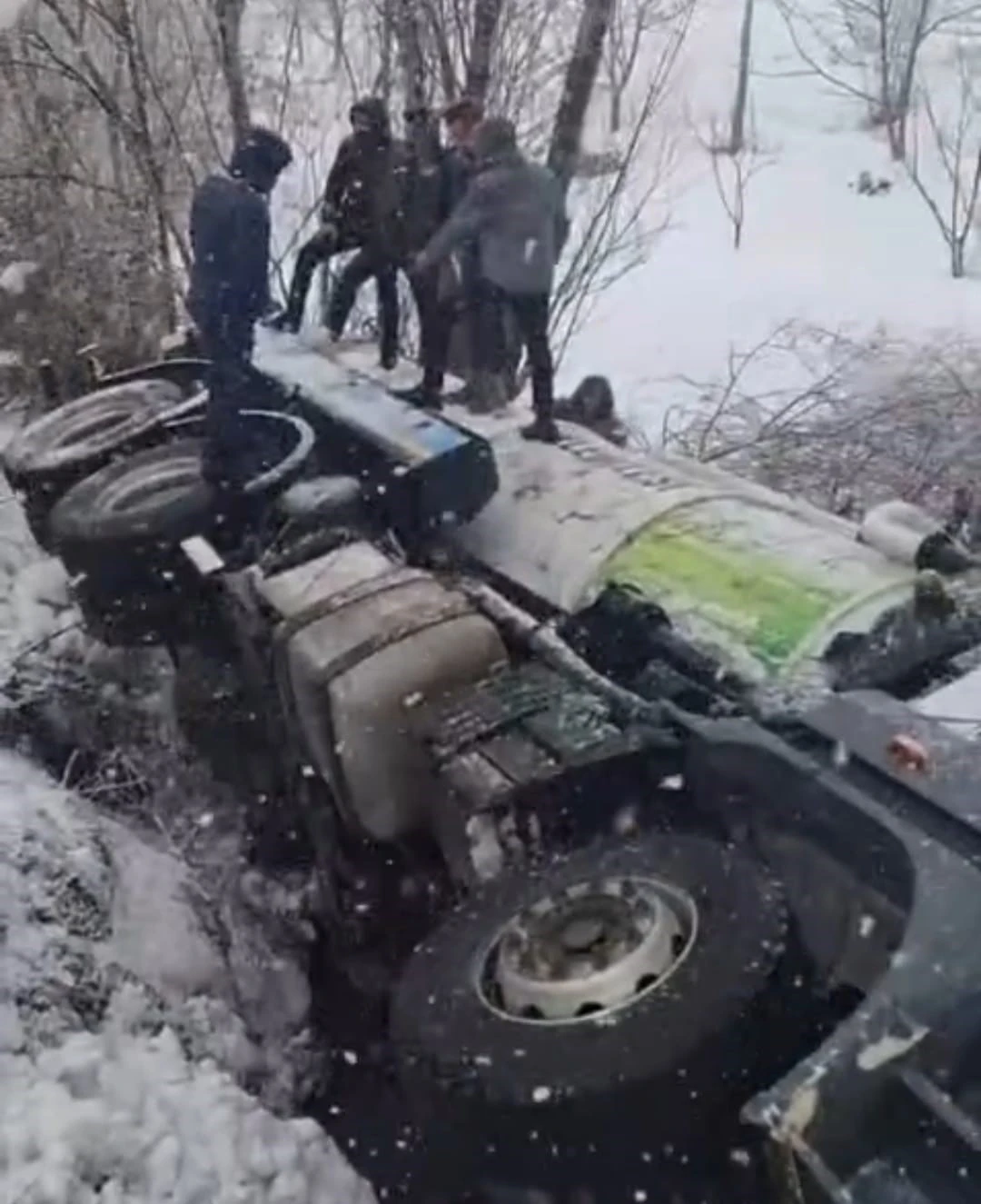 Bitlis merkeze bağlı Yolalan Belde Belediyesine ait vidanjör şarampole yuvarlandı.