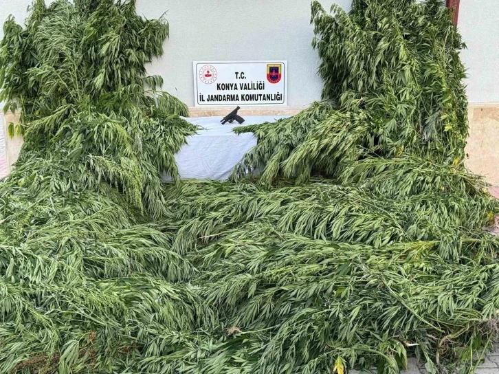 Edinilen bilgiye göre, Konya İl Jandarma Komutanlığı ile Karapınar İlçe Jandarma ekipleri, ilçenin Akçayazı Mahallesi’nde B.İ.’ye ait ayçiçeği ekili tarlasında kenevir ekimi yapıldığını belirledi. Yapılan istihbarat çalışmasında şahsın tarlasında ve evinde yapılan aramada tarlasında ekili vaziyette bin 40 kök kenevir bitkisi ve 1 adet tabanca ele geçirildi. Olayla ilgili tarla sahibi B.İ., gözaltına alındı.