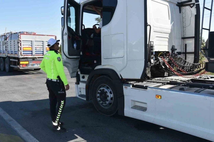 Edinilen bilgiye göre, Konya Emniyet Müdürlüğüne bağlı Bölge Trafik Denetleme Şube Müdürlüğü ekipleri, trafik düzeni ve güvenliğinin sağlanması, kazalara neden olan ihlallerin önlenmesi, araçların trafiğe uygun hale getirilmesi ve sürücülerin trafik kurallarına uyma düzenlerinin artırılması amacıyla 13 noktada yük taşıyan araçlara denetim gerçekleştirildi. Polis ekipleri yük taşıyan araçların takograf kayıtları, taşınan yükün ağırlığı ve mevzuata uygunluğu, lastik, arka ve yan koruma çerçevesi, arka işaret levhası, ışık donanımlarının mevzuata uygunluğu ve yetki belgeleri kontrol edildi. Konya’ya bağlı şehirlerarası yollarda 13 noktada yapılan denetimlerde, bin 776 araç denetlenerek kural ihlali yapan 97 araca 111 bin 803 lira cezai işlem uygulandı.