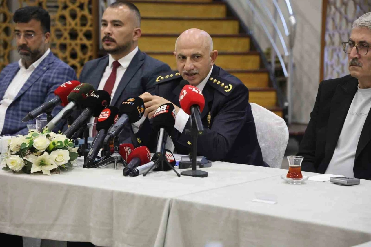 Konya İl Emniyet Müdürü Maksut Yüksek, emniyet personeliyle birlikte kentte görev yapan yazılı basın ve görsel medya temsilcileriyle toplantıda bir araya geldi. Polisevi Toplantı Salonu’nda düzenlenen programda açıklamalarda bulunan İl Emniyet Müdürü Maksut Yüksek, trafikten uyuşturucuya, asayişten narkotiğe kadar bütün alanlarda suç oranlarını en aza indirmek için çalışmalar yürüttüklerini söyledi. Geçen seneye göre birçok suç kaleminde iyileşmelerin olduğunu vurgulayan Yüksek, "Trafikten uyuşturucuya, asayişten narkotik konularına, KOM’dan aile içi şiddete varıncaya kadar gece gündüz demeden arkadaşlarımızla birlikte vatandaşlarımızın huzurunu sağlamak için elimizden gelen gayreti gösteriyoruz. İlimizde tabii ön plana çıkan birtakım hadiseler var. Bu hadiselerin de bir an önce bertaraf edilmesiyle ilgili gayretlerimizi devam ettiriyoruz. Geldiğimiz süreç içerisinde geçen seneye göre birçok suç kalemimizde iyileşmelerin olduğunu, huzurun daha kalıcı, daha kurumsal olarak sağlanmasına yönelik çalışmaların vücut bulduğunu görüyoruz. İlde yaptığımız çalışmalarımızı, uyuşturucu potansiyelini, ilde bulunan bu konudaki yaklaşımları kullananları aşağı yukarı tespit ediyoruz ve kontrol altında tutmaya çalışıyoruz. 30 büyükşehir bağlamında hem yakalamalarımız hem bu konudaki arz tarafı, talep tarafı, iki tarafın da kontrol altında olduğunu söyleyebilirim. Ama bir sayısı bile bizim için tabii ki büyük anlam ifade eder. Bu konuda çalışmalarımızı gece gündüz demeden devam ettirdiğimizi söyleyebilirim" dedi. "Çalışmaları sonuna kadar devam ettireceğiz"
