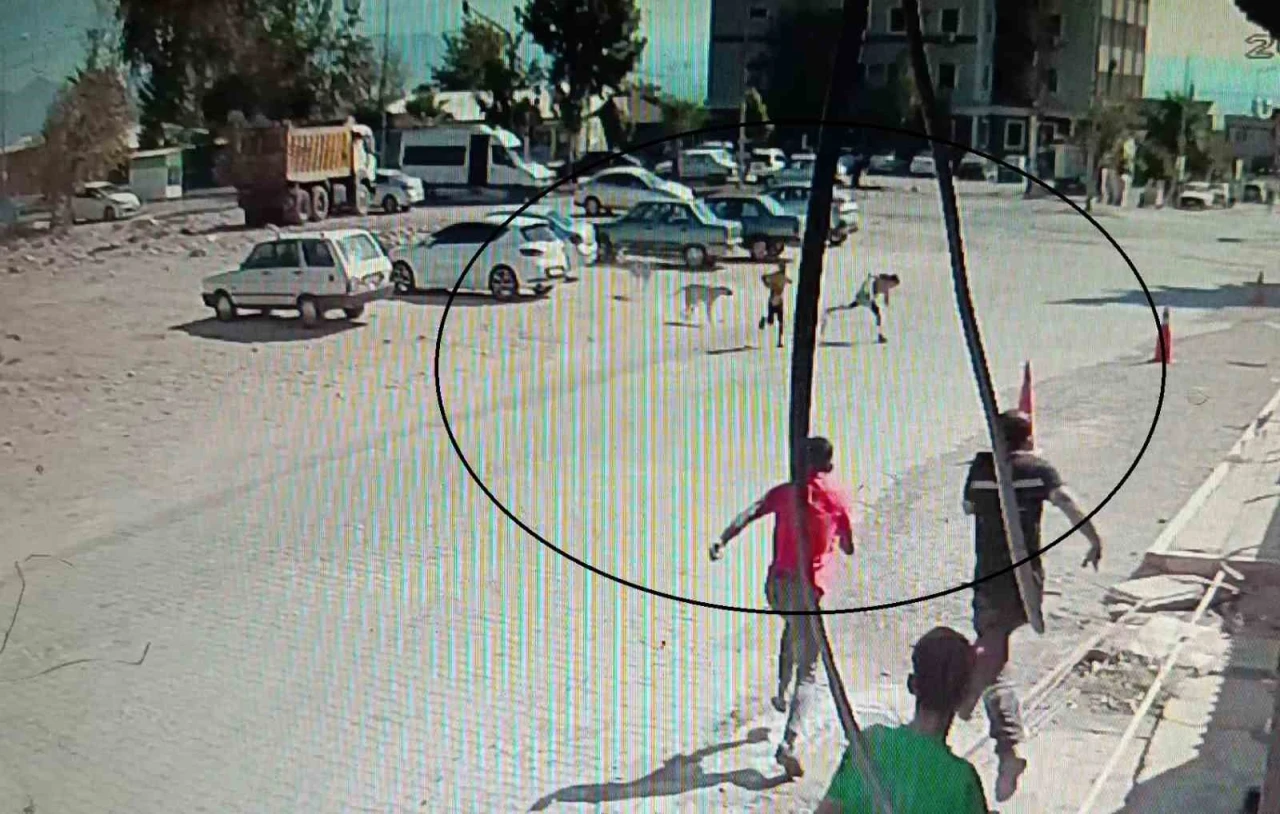 Hatay’da sokak köpeklerinin saldırısına uğrayan 2 çocuğun kaçtığı anlar ve vatandaşların yardımlarına koştuğu anlar güvenlik kamerasına yansıdı.