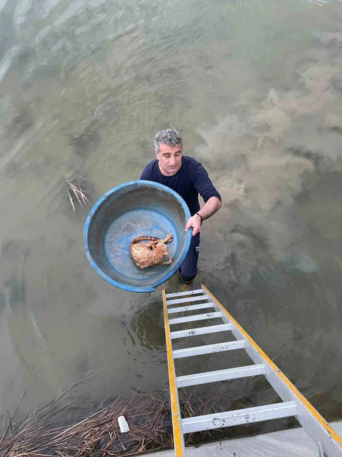 Balıkesir’in Ayvalık ilçesinde köprü altında mahsur kalan kedi, itfaiye ekipleri tarafından kurtarıldı.