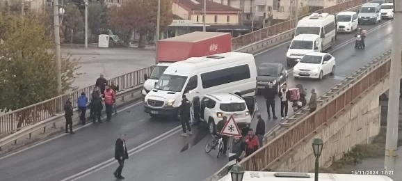 Eskişehir’de bir köprüde otomobille kamyonun çarpıştığı kaza sonucunda neredeyse tamamen tıkanan trafik sürücülere zor anlar yaşattı.