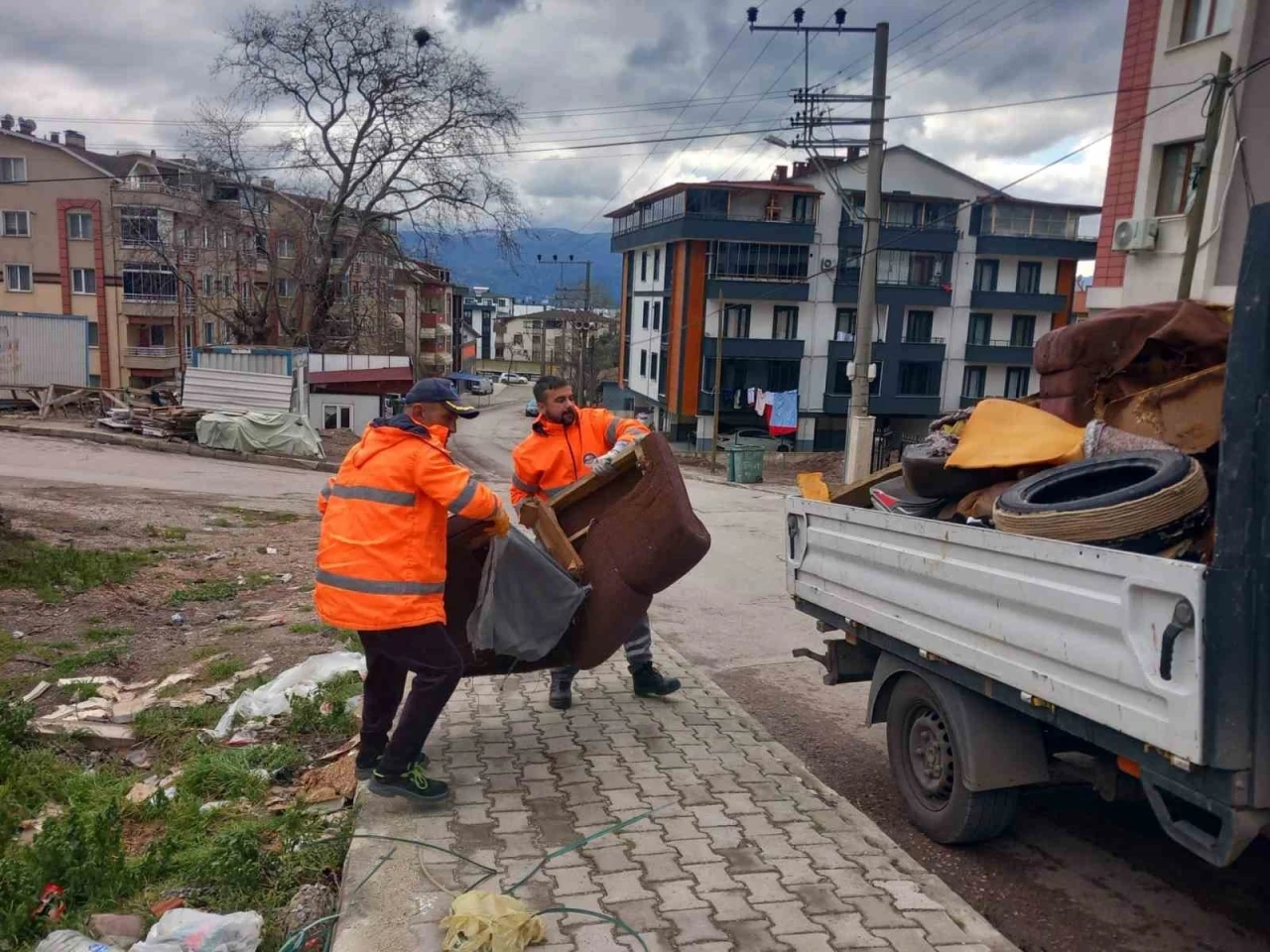 Körfez’de çöp kenarlarına bırakılan katı ve hacimli atıklar toplanıyor.