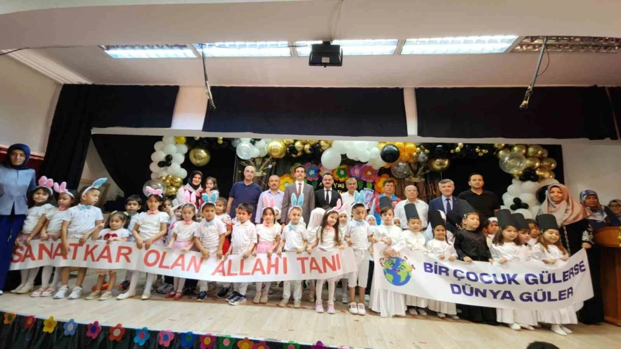 Muğla’nın Köyceğiz İlçe Müftülüğü’ne bağlı 4-6 yaş Kur’an Kursları’nın 2024-2025 Eğitim-öğretim yılı kapanış programı düzenlendi. Köyceğiz İlçe Müftülüğü tarafından Halk Eğitim Merkezi Salonunda düzenlenen 4-6 yaş Kur’an Kurslarının yıl sonu kapanış programı, protokol üyelerinin, velilerin, minik öğrencilerin ve vatandaşların yoğun katılımıyla gerçekleştirildi. Saygı duruşu ve İstiklal Marşı’nın okunmasının akabinde minik öğrencilerin Kur’an-ı Kerim tilavetiyle başlayan program İlçe Müftüsü Ahmet Karagöz’ün açış konuşması, salonu dolduran aileler ve davetlilere duygusal anlar yaşatan minik öğrencilerin Kur’an-ı Kerim tilavetleri, ilahileri ve çeşitli gösterileriyle devam etti. Piyano eşliğinde ilahilerin söylenmesi ve semazen gösterisini sergileyen minik öğrencilerin sevimli performansları öğrencilerin birlikte seslendirdiği ’Filistin’ temalı kapanış rondu katılımcılardan büyük alkış aldı. Açış konuşmasını yapan Müftü Karagöz, "4-6 yaş Kur’an Kurslarımızın amacı göz aydınlığı çocuklarımızı milli ve manevi değerlerine bağlı, vatanına ve milletine faydalı birer birey olarak yetiştirmektir. Kur’an Kurslarımız sadece dini bilgilerin verildiği yerler değildir. Aynı zamanda çocuklarımızın sosyal ve ahlaki gelişimlerine de büyük katkı sağlamaktadır. Çocuklarımızın hayat yolculuklarında onlara destek olmaya hep devam edelim. Sözlerimi tamamlarken, Kurslarda emeği geçen, özveriyle çalışan kıymetli hocalarımıza, fedakâr velilerimize ve destek veren herkese gönülden teşekkür ediyorum. Programımıza teşriflerinizden dolayı hepinize şükranlarımı sunuyor, yavrularımızı muhabbetle kucaklıyorum. Rabbimden bahtlarını açık eylemesini niyaz ediyorum" diye konuştu. Program; protokol üyeleriyle toplu aile fotoğrafı çekimi ve misafirlere keşkek ikramıyla sona erdi.