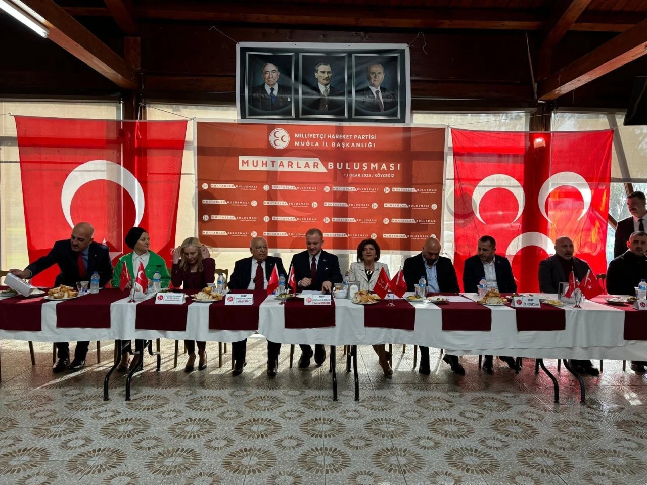 MHP Muğla İl Başkanlığı tarafından başlatılan ve tüm ilçelerde düzenlenmesi planlanan "Muhtarlar Buluşması" programının 4.’sü Köyceğiz’de gerçekleştirildi. Toplantıya, 24 mahalle muhtarı ile birlikte MHP Muğla İl Başkanı Burak Demirel, MHP Köyceğiz İlçe Başkanı Salih Birinci, Ortaca İlçe Başkanı Elvan Yüksel, Merkez Disiplin Kurulu Üyesi Tülin Tuncay, KAÇEP İlçe Başkan Yardımcısı Emine Muhtaroğlu ve Ortaca Ülkü Ocakları Başkanı Yalçın Güme katıldı.