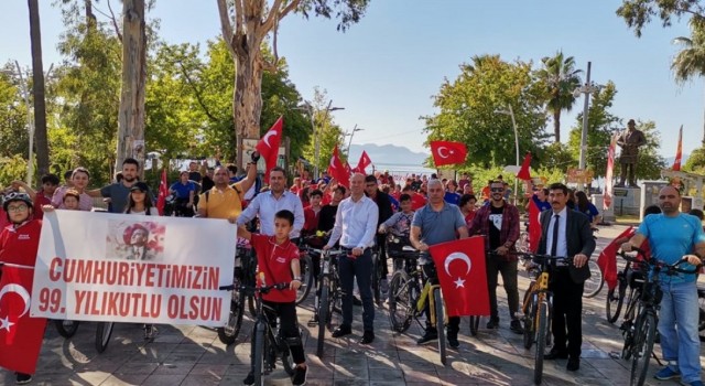 Köyceğiz’de, Cumhuriyet Bayramı kutlamaları için bir dizi etkinlik planlandı. 29 Ekim Cumhuriyet Bayramı etkinlikleri çerçevesinde, Cumhuriyetimizin 99. yıl dönümü sebebiyle bisiklet turu etkinliği yapıldı. Bisikletli vatandaşlar Belediye binası yanında toplandı. Bisikletlilere Köyceğiz Belediye Başkanlığı tarafından Türk Bayrağı dağıtıldı. Bisiklet turu etkinliğine katılan bisikletçiler Kaymakamlık önünden Atatürk Kordonu’na çıktı. Kordondan Deltaya kadar ve oradan geriye dönen bisikletçiler Kaymakamlık binası önünde etkinliği tamamladı. Etkinliğe Köyceğiz Kaymakamı Mustafa Maslak, Köyceğiz Belediye Başkan Yardımcısı Metin Yerlikaya, Köyceğiz İlçe Milli Eğitim Müdürü Kerem Karahan, Köyceğiz Gençlik ve Spor İlçe Müdürü Mehmet Kaleli, okul/kurum Müdürleri, öğretmenler, öğrenciler ve vatandaşlar katıldı.