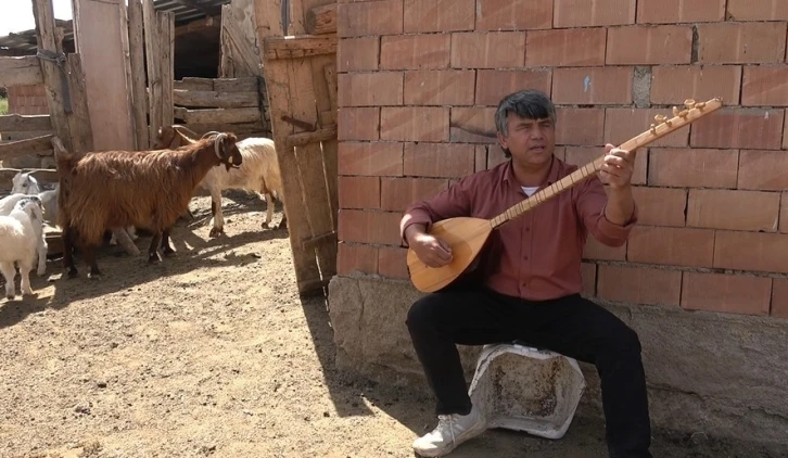 Çankırı’da yüzde 100 görme engelli çiftçinin bağlama çalarken koyunlarının eşlik etmesi renkli görüntüler ortaya çıkartıyor.