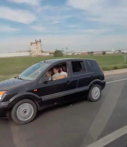 Tekirdağ’ın Ergene ilçesinde kucağında çocukla araba kullanan bir sürücü, seyir halindeki bir araçtan çekilen cep telefonu kamerasına kaydedildi.