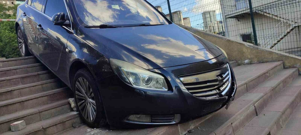 Küçükçekmece’de hastaneye hasta yakınını getiren sürücü, yol zannettiği merdivenlerde aracıyla asılı kaldı. Kazada yaralanan olmazken, merdivenlerdeki aracı görenler şaşkınlığını gizleyemedi.