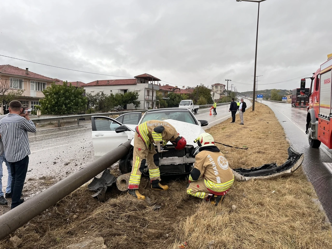 Manisa’nın Kula ilçesinde yağışlı hava nedeniyle kayganlaşan yolda direksiyon hakimiyetini kaybeden otomobil, orta refüje çıkarak aydınlatma direğine çarptı. Kazada şans eseri yaralanan olmadı.
