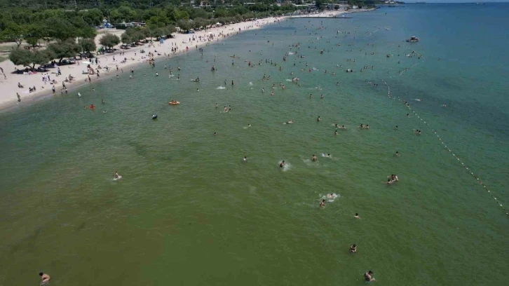 Sıcak havadan bunalan çok sayıda vatandaşın sahilde oluşturduğu yoğunluk dron ile görüntülendi. Havadan çekilen görüntülerde sahildeki yoğunluk gözler önüne serildi.