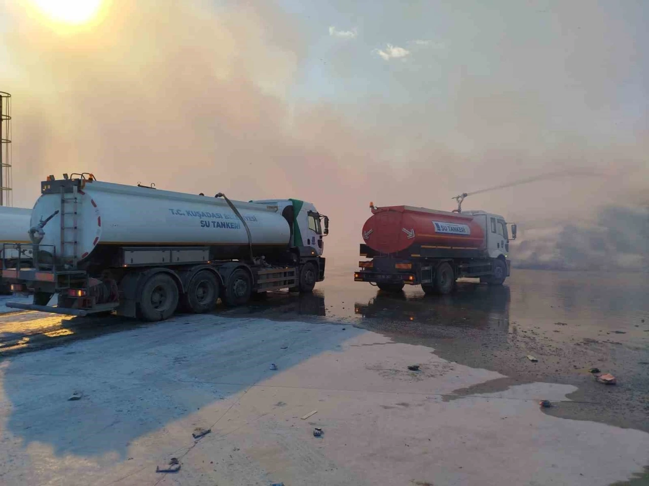 Kuşadası Belediyesi, Söke’de bulunan bir kağıt fabrikasında çıkan yangının söndürme çalışmalarına destek vermek amacıyla su tankerlerini bölgeye gönderdi. Söke Organize Sanayi Bölgesi’nde bulunan bir kağıt fabrikasında, dün saat 11.00 sıralarında henüz belirlenemeyen bir nedenle yangın çıktı. Sıkıştırılmış atık kağıtların depolandığı alanda başlayan yangın, rüzgarın da etkisiyle kısa sürede yayıldı. İhbarla bölgeye sağlık, itfaiye ve polis ekipleri sevk edildi. Kısa sürede olay yerine varan itfaiye ekipleri yangını söndürme çalışmalarına başladı. Kuşadası Belediyesi de yangının çıktığı ilk andan itibaren söndürülmesi için seferber oldu. Bu kapsamda Makine İkmal Bakım ve Onarım Müdürlüğü’ne ait 2 su tankeri bölgeye gönderildi. Söke’deki tankerler, sahada itfaiyeye gerekli olan su desteğini sağlıyor.