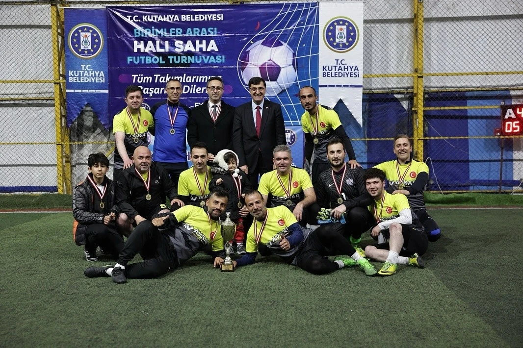 Kütahya Belediyesi tarafından düzenlenen 2024 Yılı Birimler Arası Halı Saha Futbol Turnuvası’nın Kupa Töreni, Zafertepe Halı Saha Kompleksi’nde Belediye Başkanı Eyüp Kahveci’nin katılımıyla gerçekleştirildi.
