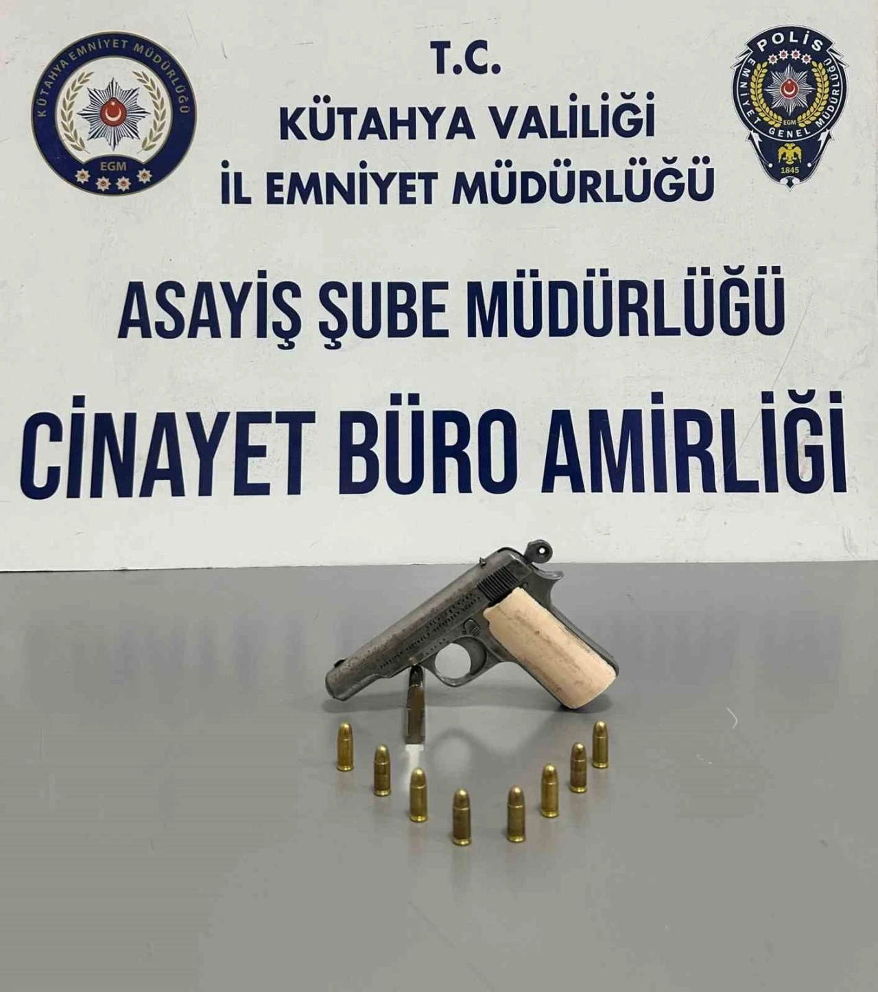 Kütahya İl Emniyet Müdürlüğü Asayiş Şube Müdürlüğü Cinayet, Gasp ve Kayıp Şahıslar Büro Amirliği ekipleri, Vefa Mahallesi Barlar Bölgesi’nde gerçekleştirdikleri denetimlerde bir araçtan ruhsatsız tabanca ele geçirdi.