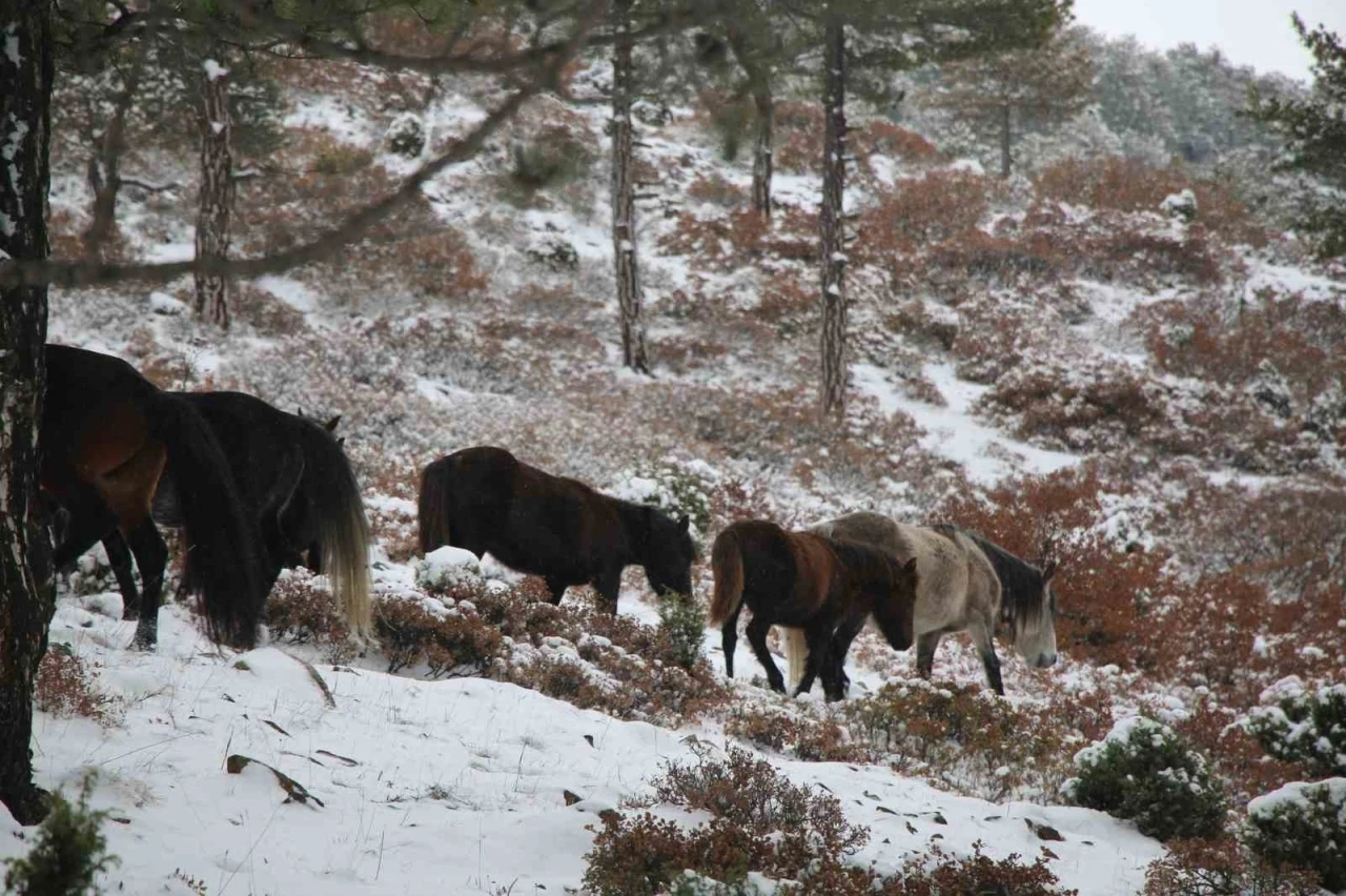Tunçbilek beldesinden Şevki Şimşek isimli doğaseverin ormanda yaban hayvanlarına fırınından götürdüğü ekmekleri verdiği sırada dron ile çektiği görüntüler büyük ilgi gördü. Gruplar halinde dolaşan yaban atları, bir süre sonra ormanda uzaklaşarak gözden kayboldu.