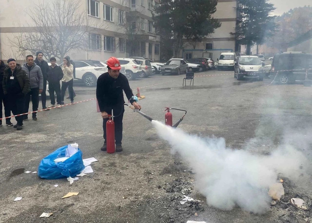Kütahya Evliya Çelebi Eğitim ve Araştırma Hastanesinde yangın söndürme cihazlarının kullanımları, yangınlarda ilk müdahale ve yangın söndürme eğitimleri gerçekleştirildi.