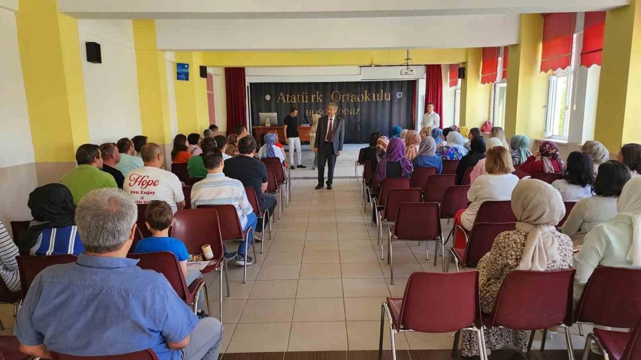 Konuşmasında velilerle iş birliğinin önemine de değinen Müdür Mustafa Yılmaz, çocukların akademik başarısının yanında toplumsal hayata güçlü bireyler olarak hazırlanabilmesi için veli desteğinin vazgeçilmez olduğunu vurguladı. Rehberlik hizmetlerinin güçlendirilmesi, yetenek yönelimli okul tercihlerinin artırılması ve mesleki eğitime yönlendirmenin gerekliliği üzerine örneklerle dikkat çekti.