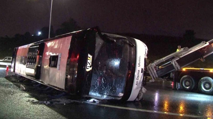Kuzey Marmara Otoyolu’nda sürücüsünün direksiyon hakimiyetini kaybettiği otobüs devrildi. Otobüste hiçbir yolcunun olmaması ise faciayı önledi.