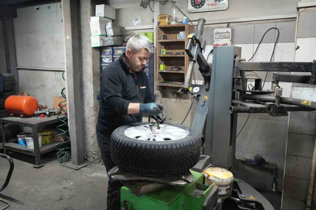 Lastik onarım ve değişim ustabaşı Ünsal Bayrak, "30 yıldır mesleğin içindeyim. Güvenirlilik açısından lastiklerin yeni tarihli olması lazım. Yumuşak kauçuk olmasına dikkat edilmesi gerekiyor. Hafta sonu yağacak olan karla beraber bir yoğunluğumuz var. Vatandaşlarımız hava durumuna bakarak hareket ettikleri için bugün kalabalık. Cumartesi günü de olur büyük bir ihtimalle" diye konuştu. "Kalitesiz lastik kazaya sebebiyet verebilir"
