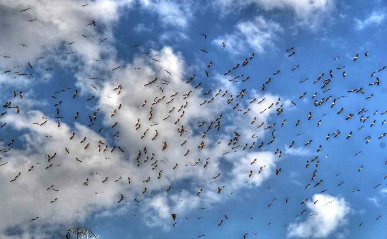 Yaz döneminin sonuna yaklaşılırken daha sıcak ülkelere göç etmek üzere yola çıkmaya başlayan leylek sürüleri Konya’nın Beyşehir ilçesinin semalarında görüntülendi.