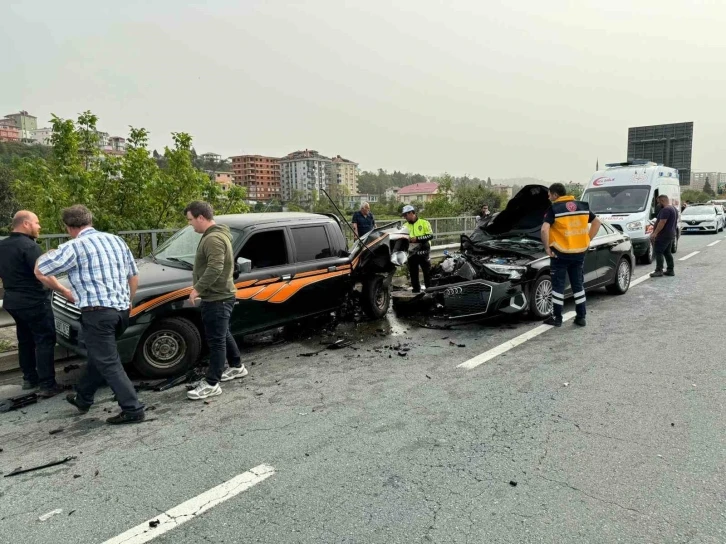 Rize’de lüks otomobil yol kenarında arıza yapan çift kabin araca çarptı. Kazada 1 kişi yaralandı.