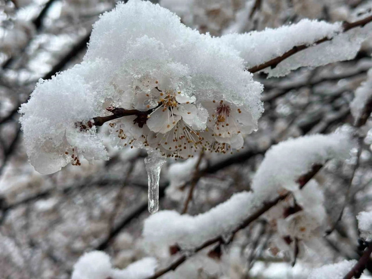 Malatya’da çiçeklenen kayısı bahçeleri etkili olan kar yağışıyla birlikte tam anlamıyla beyaza bürünerek kartpostallık görüntüler oluşturdu. Uzmanlar ise kar yağışının ağaçlar için koruyucu bir etkisi olduğunu belirterek, asıl riskin ilerleyen günlerde yaşanabilecek don olayları olduğunu vurguluyor.