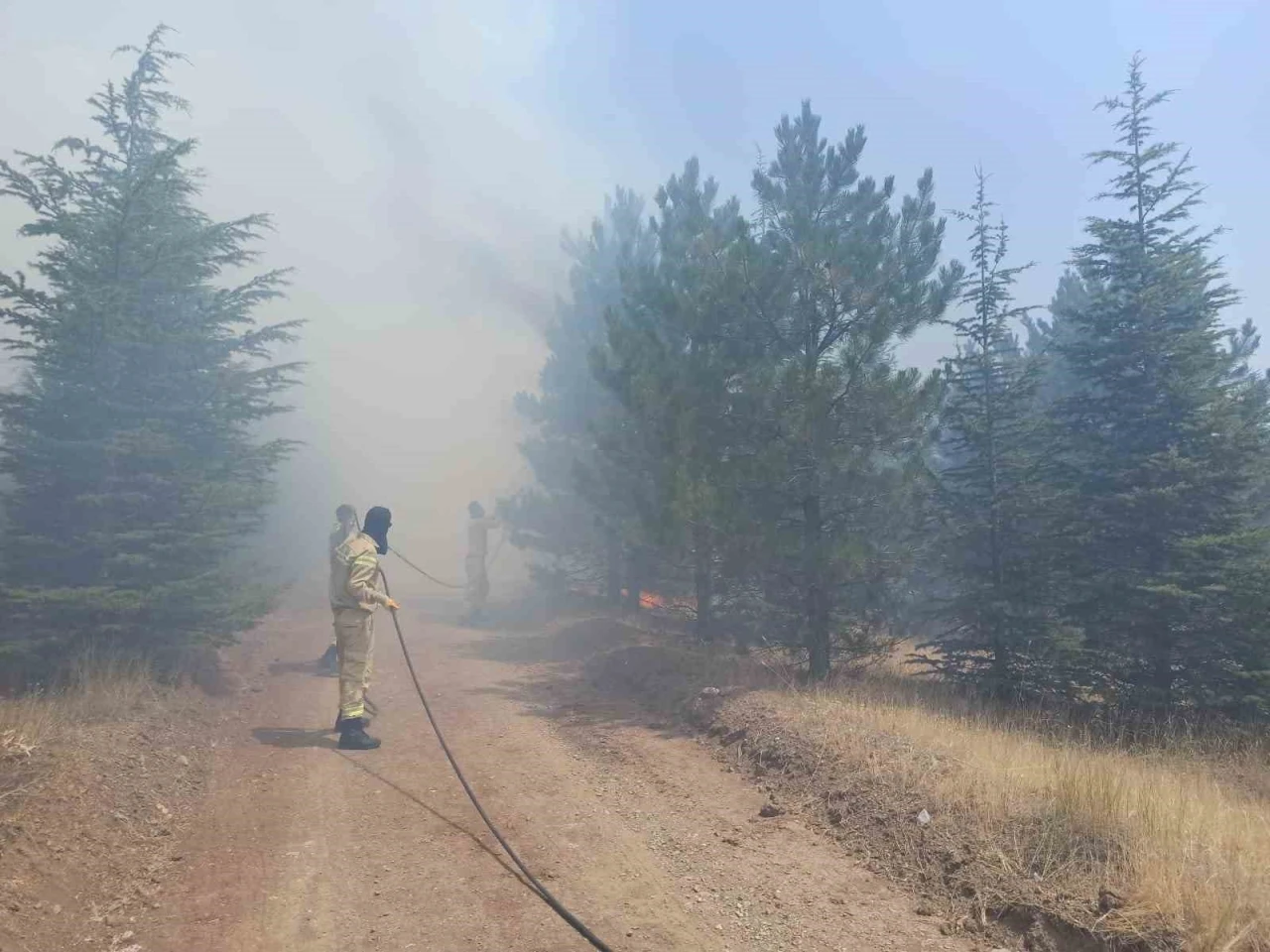 Yangının yerleşim yerlerine ulaşmaması için yoğun çaba sarf edilirken, bölgedeki söndürme çalışmalarının sürdüğü bildirildi.