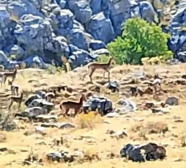 Malatya’nın Akçadağ ilçesinde, nesli tükenme tehlikesi altında bulunan ve koruma altına alınan yaban keçileri sürü halinde görüntülendi.