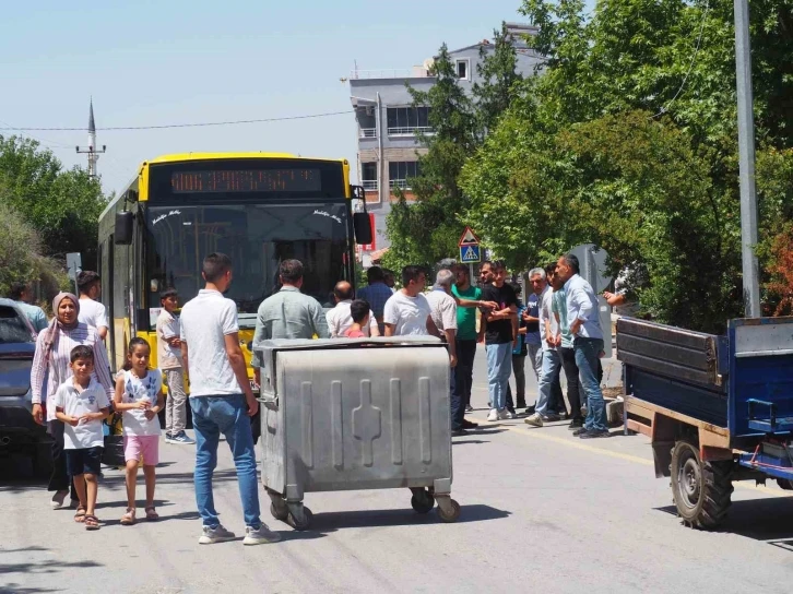 Malatya’da Büyükşehir Belediyesi’nin Orduzu Mahallesi’ne çalışan merkez otobüs hattını kaldırdığını belirten mahalle halkı çöp konteynerleri ile yolu kapatıp duruma tepki gösterdi.