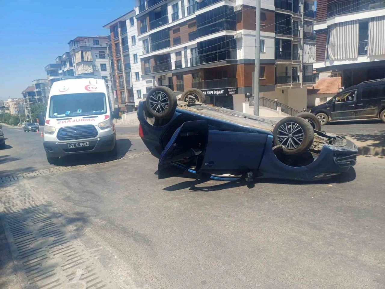 Manisa’nın Salihli ilçesinde sürücüsünün kontrolünden çıkan ve aydınlatma direğine çarpan otomobil takla attı. Sürücü emniyet kemeri sayesinde yara almadan kurtuldu.