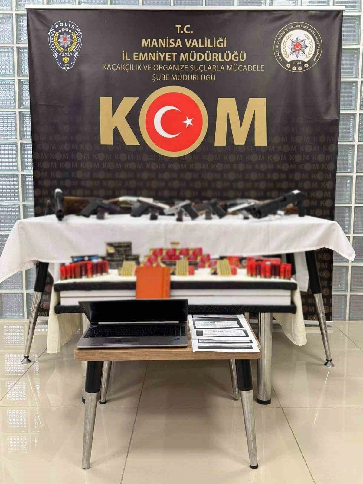 Manisa İl Emniyet Müdürlüğü Kaçakçılık ve Organize Suçlarla Mücadele Şube Müdürlüğünce Soma ilçesinde Soma Cumhuriyet Başsavcılığı koordinesinde yürütülen ‘Suç işlemek amacıyla örgüt kurma’ suçu kapsamında Doğan Gezekli isimli şahsın elebaşılığını yaptığı 22 şüphelinin; ‘Yağma’, ‘Tefecilik’, ‘Vergi Usul Kanununa Muhalefet’, ‘Silahla Yaralama’, ‘Kişiyi Hürriyetinden Yoksun Kılma’, ‘6136 SKM’, ‘Tehdit’ gibi suçlara karıştıkları tespit edildi. Manisa merkezli Trabzon, Hatay, Tekirdağ illerinde toplam 22 adreste 01.10.2024 günü saat: 06.30’da İstihbarat Şube Müdürlüğü destekli eşzamanlı operasyon gerçekleştirildi. Operasyonlarda 22 şüphelinin tamamı yakalanarak gözaltına alındı. Operasyon kapsamında; 7 adet tabanca, 2 bin 303 adet fişek, 4 adet pompalı tüfek, çok sayıda çek, senet ve örgütsel doküman, 2 adet laptop, 3 adet flash bellek, ele geçirildi. Gözaltına alınan şahıslar emniyetteki işlemlerinin ardından adli mercilere sevk edileceği bildirildi.