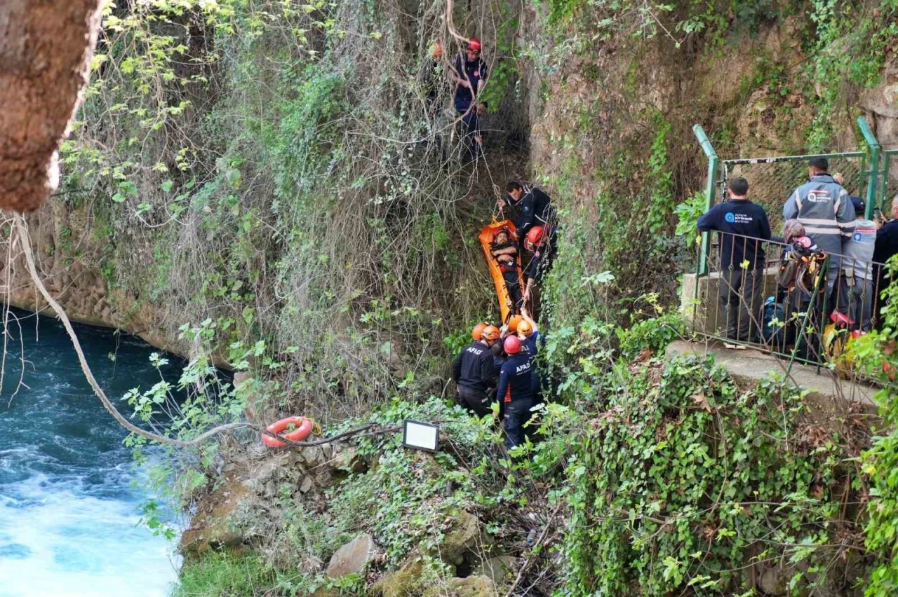 Olay, saat 13.15 sularında Düden Şelalesi’nin seyir alanına yakın bölgede meydana geldi. Manzarayı izlemek için yeşil alana çıkan 33 yaşındaki Erman Güven, ayağının kayması sonucu şelale kenarındaki sarp yamaca yaklaşık 15 metre yükseklikten düştü. Çalılıklar arasında sıkışan Güven, bulunduğu noktada yardım çığlıkları atarak çevredeki vatandaşlardan yardım istedi. Durumu fark eden vatandaşlar hemen 112 Acil Çağrı Merkezi’ni arayarak yardım talebinde bulundu. 45 dakikalık operasyonla kurtarıldı