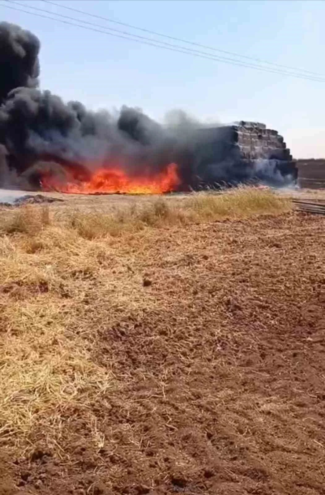 Mardin’de çıkan yangında, 25 ton saman ve yaklaşık 300 sulama borusu yandı.