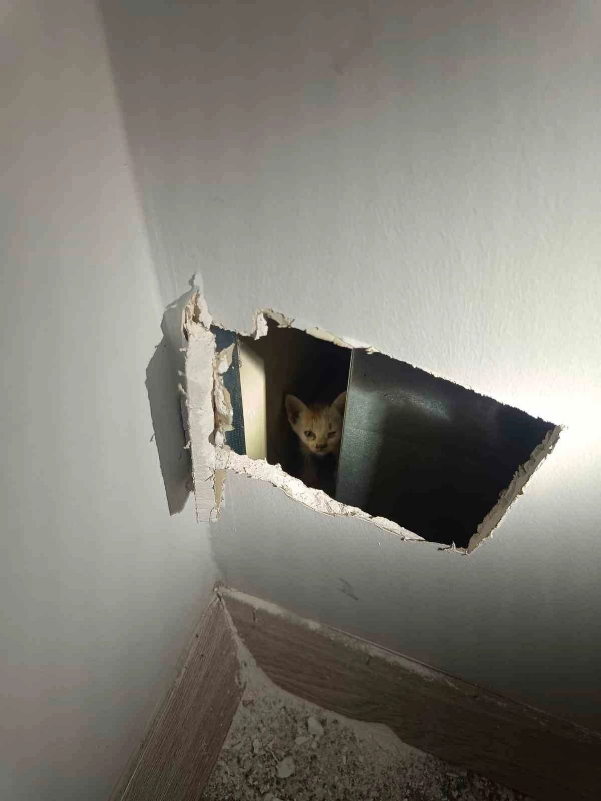 Mardin’in Kızıltepe ilçesinde havalandırma boşluğuna düşen iki yavru kedi, itfaiye ekiplerinin müdahalesiyle kurtarıldı.