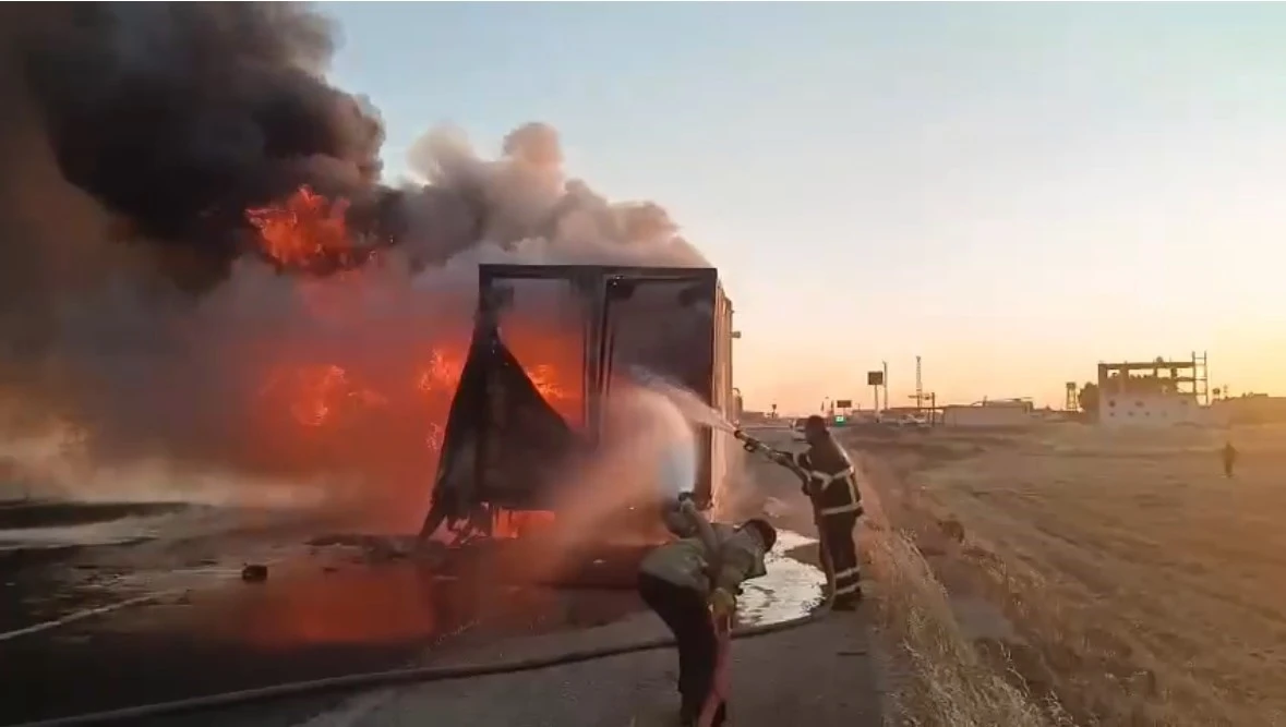 Olay, dün akşam saatlerinde Kızıltepe ilçesine bağlı kırsal Sürekli Mahallesi yakınlarında, uluslararası İpekyolu üzerinde meydana geldi. Edinilen bilgiye göre, 27 AUB 605 plakalı kamyon, henüz belirlenemeyen bir nedenle seyir halindeyken alev aldı.