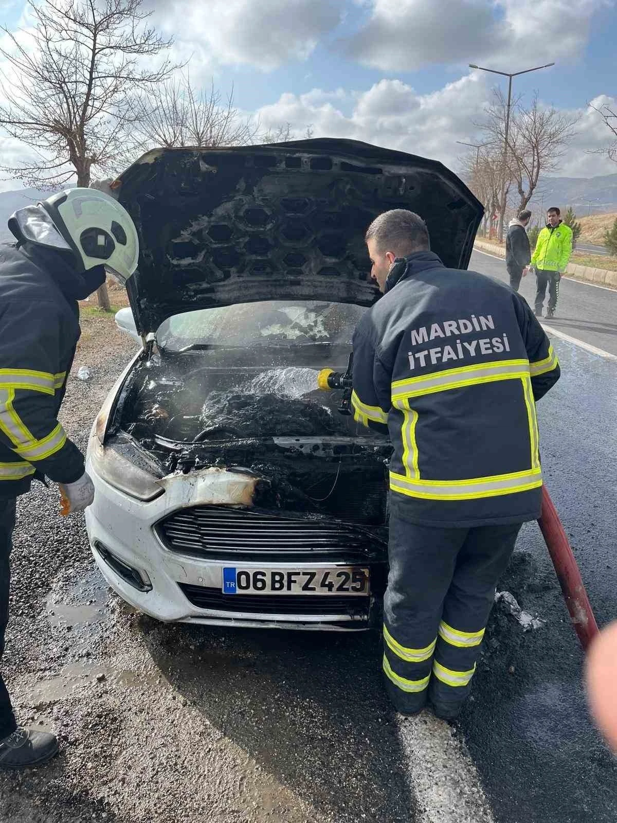 Mardin’de seyir halindeki otomobil yanarak kullanılmaz hale geldi.
