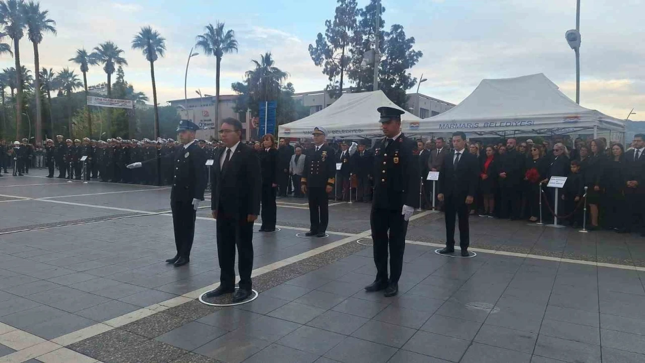 10 Kasım Atatürk’ü anma programları dahilinde Marmaris Atatürk meydanında ilk olarak çelenk sunma töreni gerçekleştirildi. Kaymakam Nurullah Kaya, Marmaris Belediyesi Başkanı Acar Ünlü, Garnizon Komutanı Tuğamiral Neslim Eski, çelenk sundu. Çelenk sunumunun ardından Atatürk’ün hayata gözlerini yumduğu 09.05’te ilçe genelinde sirenler çaldı, 2 dakikalık saygı duruşu yapıldı. Saygı duruşunun ardından Aksaz Askeri bandosu eşliğinde İstiklal marşının okunması ile Atatürk meydanındaki tören sona erdi.