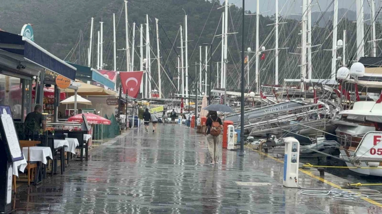 Dünyanın ve Türkiye’nin gözde turizm kentlerinden Muğla’nın Marmaris ilçesi, bahar mevsiminin son gününü sağanak yağışla geçirdi. Meteoroloji 4. Bölge Müdürlüğü’nün uyarılarının ardından, ilçe sabaha yağmurla uyandı. Marmaris’te tatil yapan turistler, şemsiye ve yağmurluklarla sokağa çıkarak kapalı çarşı, yat limanı gibi gözde noktaları gezip alışveriş yaptı. Yağışlı havayı fırsata çeviren turistler, Marmaris’in bahar mevsiminin son gününde ilçeyi gezme fırsatı yakaladı. Gün boyu etkili olan sağanak, bazı bölgelerde maddi hasarlı trafik kazalarına yol açtı. Ancak yetkililer, ciddi bir olumsuzluk yaşanmadığını bildirdi.