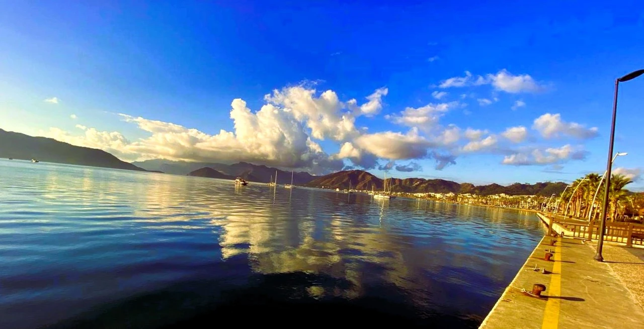 Muğla'nın Marmaris ilçesi, soğuk kış günlerinin etkisini hissettiren ülke genelinin aksine güne 16 derece sıcaklık ve güneşli bir başlangıç yaptı. Sabah saatlerinde Marmaris Körfezi, birbirinden güzel manzaralarla fotoğraf tutkunlarına adeta bir görsel şölen sundu. Az da olsa bulutların arasından kabına sığmayan güneşin ışıltıları, hem doğayı hem de Marmarislileri ısıtarak huzurlu bir atmosfer oluşturdu.