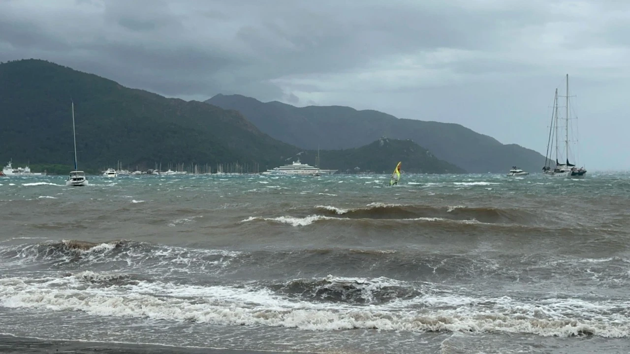 Yaklaşık iki gündür Marmaris’te etkili olan fırtına ve şiddetli rüzgar, sahillerde zor anlar yaşatırken, bazı sörfçüler için ise adeta bir fırsata dönüştü.