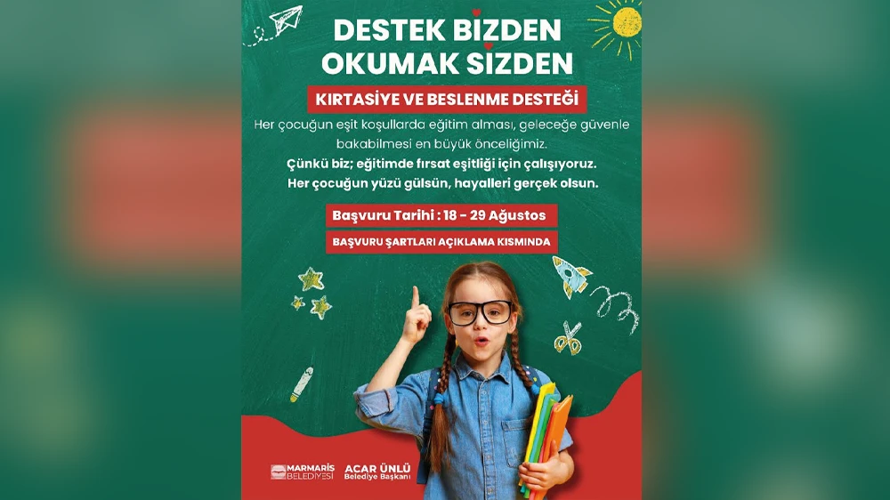 Her çocuğun eşit koşullarda eğitim alması ve geleceğe güvenle bakabilmesi hedefiyle sosyal destek çalışmalarını sürdüren Marmaris Belediyesi, yeni eğitim-öğretim yılı öncesi öğrencilere yönelik “Okumak Sizden, Destek Bizden” kampanyasını başlattı. Kampanya kapsamında, ihtiyaç sahibi öğrencilere kırtasiye ve beslenme desteği verilecek.