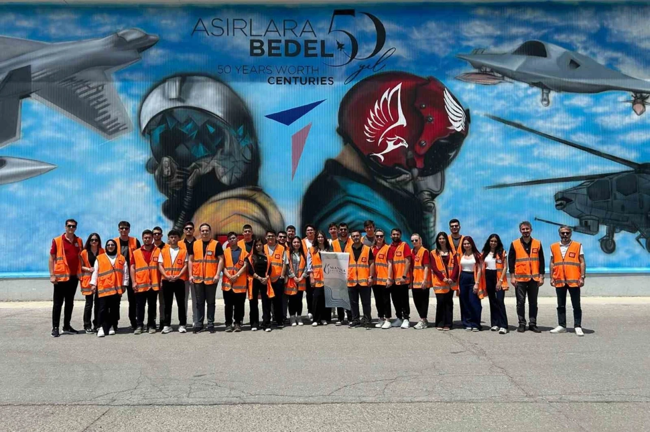 TUSAŞ üretim hatlarını yerinde inceleyen öğrenciler, modern imalat tekniklerini ve teknolojik altyapıyı yakından görme fırsatı elde etti. Teknik gezide ayrıca, savunma sanayine yönelik stratejik projeler ve bu alandaki kariyer imkanları hakkında bilgilendirmeler yapıldı.