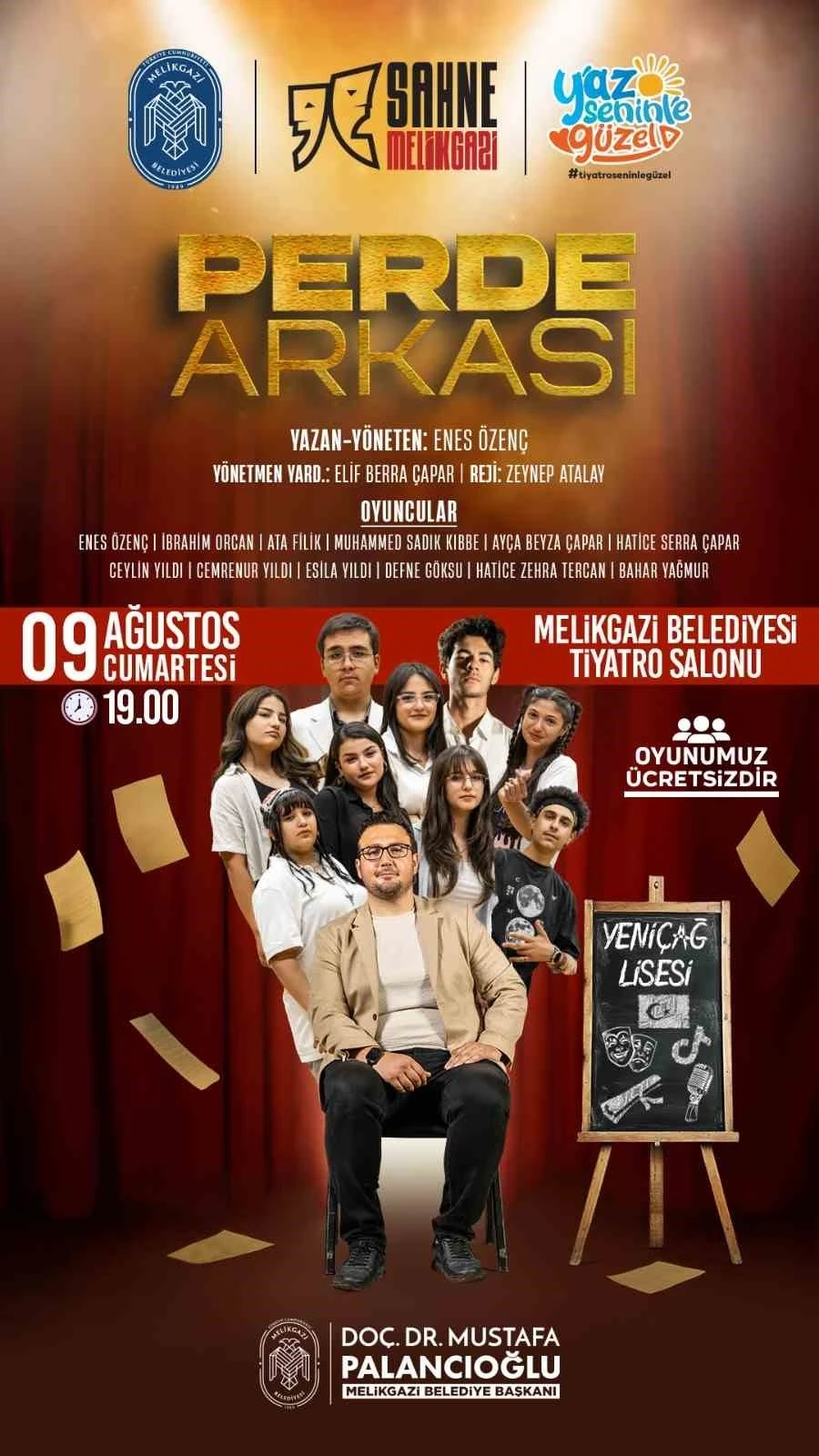 İlçede çeşitli kültür sanat etkinlikleri düzenleyen Melikgazi Belediyesi; 9 Ağustos Cumartesi günü Sahne Melikgazi kapsamında hazırladığı ’Perde Arkası’ tiyatro oyununu sahneleyecek.