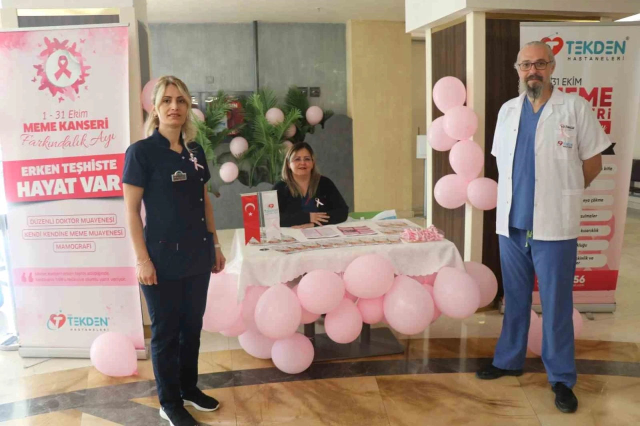 Meme Kanseri Farkındalık ayında, Denizli Özel Tekden Hastanesine gelen hastalara ve misafirlere farkındalık oluşturmak amaçlı bilgilendirmelerde bulunduklarını belirten Denizli Özel Tekden Hastanesi Hemşire Hizmetleri Müdürü Cemile Balıkçıoğlu ise “Bu ay meme kanseri farkındalık ayı olduğu için bizde hastanemiz olarak girişlerimize ve polikliniklerimize stantlar kurduk. Pembe renkli balonlar astık ve gelen hastalarımıza, ziyaretçilerimizi bilgilendirmek amaçlı broşür dağıtımı yaptık. Hastanemizde meme kanseri belirtileri hakkında bilgiler verildi. Memede herhangi bir akıntı olması gibi konularda bilgiler verdik. Meme kanseri hakkında ise gelen hastalarımıza farkındalık oluşturmak ve meme kanserinin önüne geçmek adına stantlar kurarak bir çalışma yaptık” dedi.