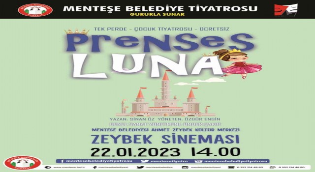 Menteşe Belediye Tiyatrosu tarafından 22 Ocak Pazar Günü “Prenses Luna” ve 29 Ocak Pazar Günü “Huysuz Fil Fiko” adlı ücretsiz çocuk oyunlarının her ikisi de saat:14.00’te Menteşe Belediyesi Ahmet Zeybek Kültür ve Sanat Merkezi’nde sahnelenecek.