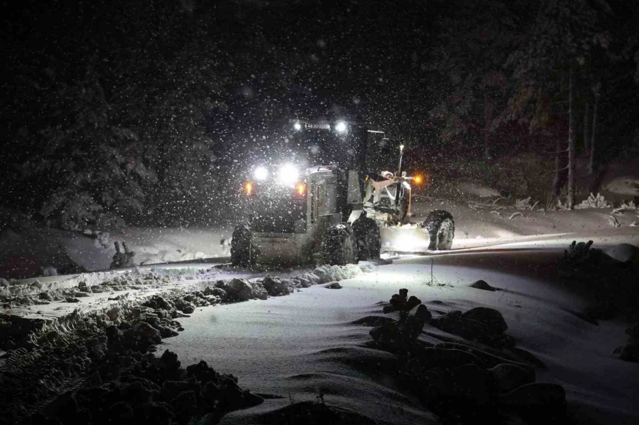 Menteşe Belediyesi ekipleri, Kozağaç Mahallesi ile Kavaklıdere ilçesini birbirine bağlayan yolda etkili olan yoğun kar yağışı nedeniyle gece boyunca aralıksız çalışma yürüttü.