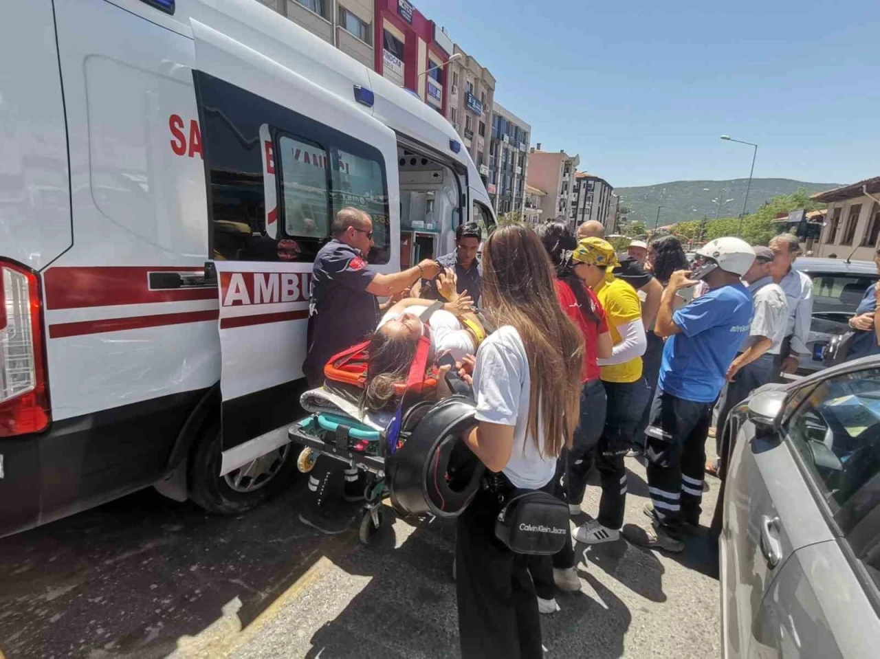 Muğla’nın Menteşe ilçesinde tali yoldan çıkan otomobil, seyir halindeki motosiklete çarptı. Kazada motosikletli kadın yaralandı.